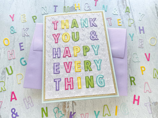 Alphabet Outline Thank You Card April 14, 2022 Sometimes you need a card that covers everything all at once! That's where our alphabet dies come to the rescue. Alphabet dies allow you to create a truly custom sentiment...