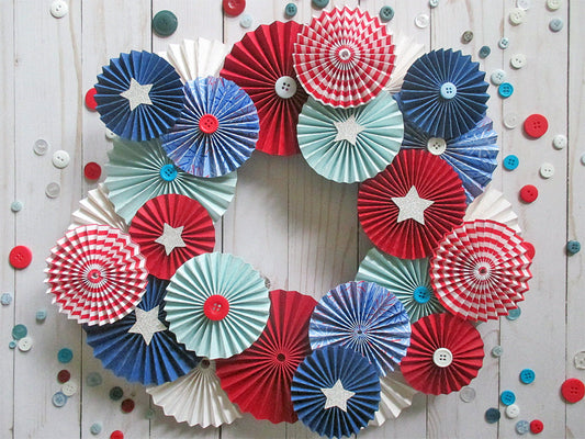 Fourth of July is the perfect time to create paper fireworks in the form of a Patriotic Rosette Wreath! You'll be amazed at how easily you can create this stunning display...