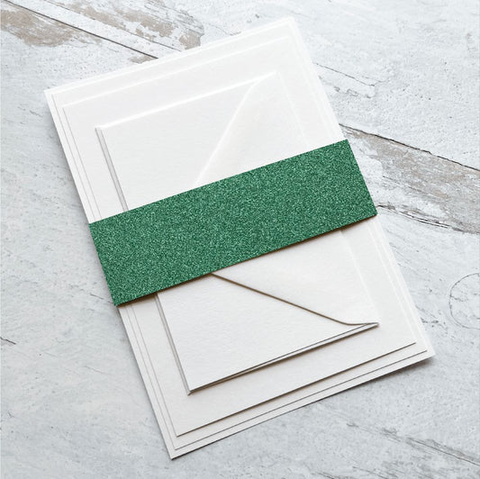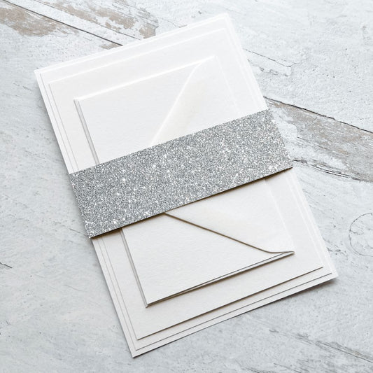 These belly bands make beautiful presentation wrapped around your invitation suite. Find the perfect color to add a touch of elegance and stylish sparkle as you wrap your wedding invitations, and sturdy enough to hold wax seals and embellishments.