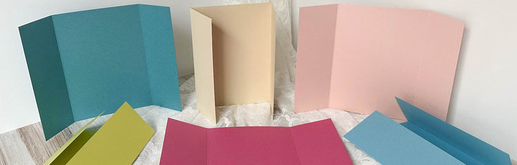 These Gate Fold Cards make beautiful invitations, announcements, greeting cards and photo cards. All folded cards ship flat and come creased and ready to print, embellish and fold.
